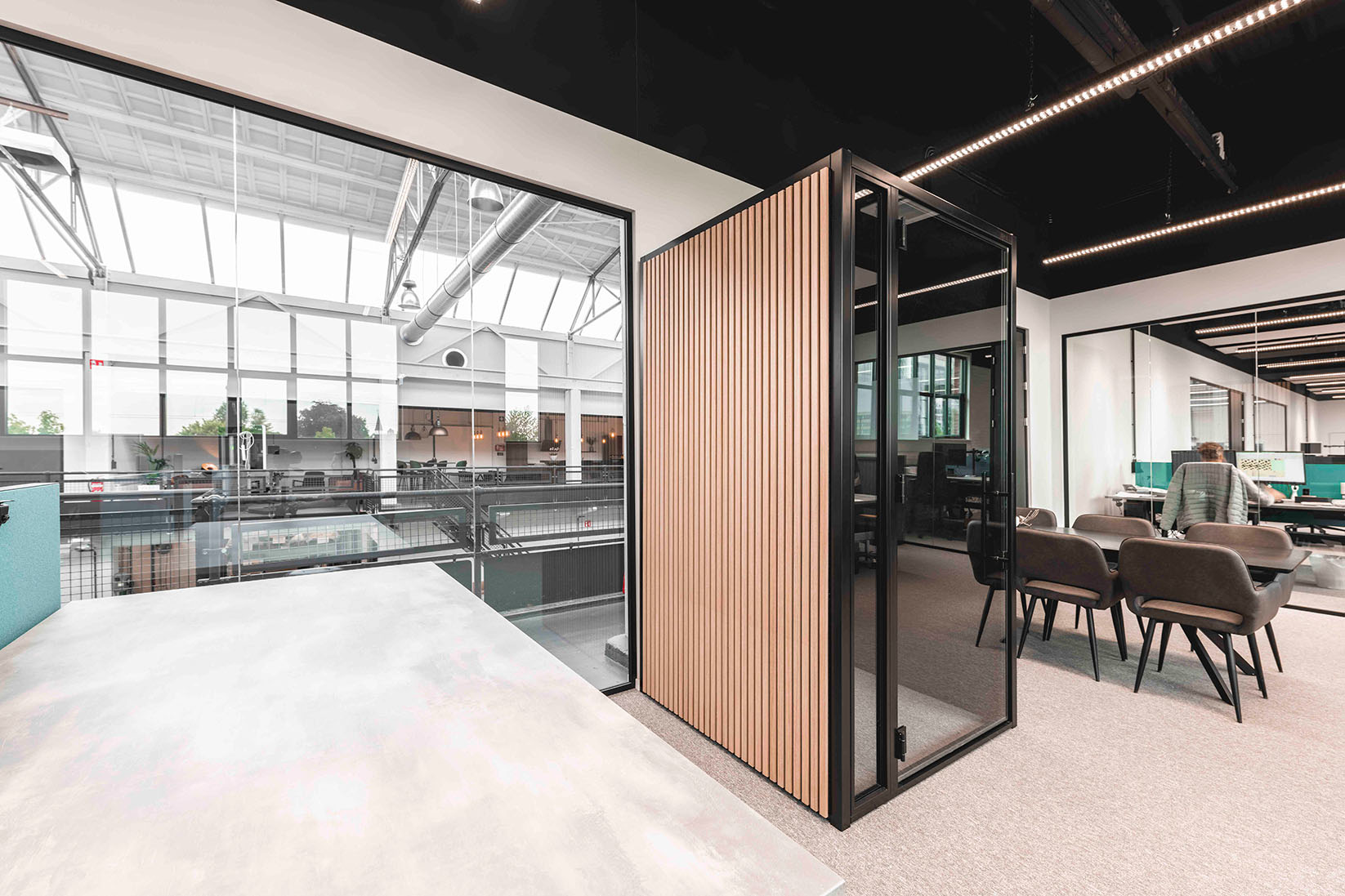 Für Ihr Büro: Schaffen Sie mit unseren Raum-in-Raum Systemen eine offene und kommunikative, aber zugleich auch eine diskrete und konzentrierte Arbeitsatmosphäre.