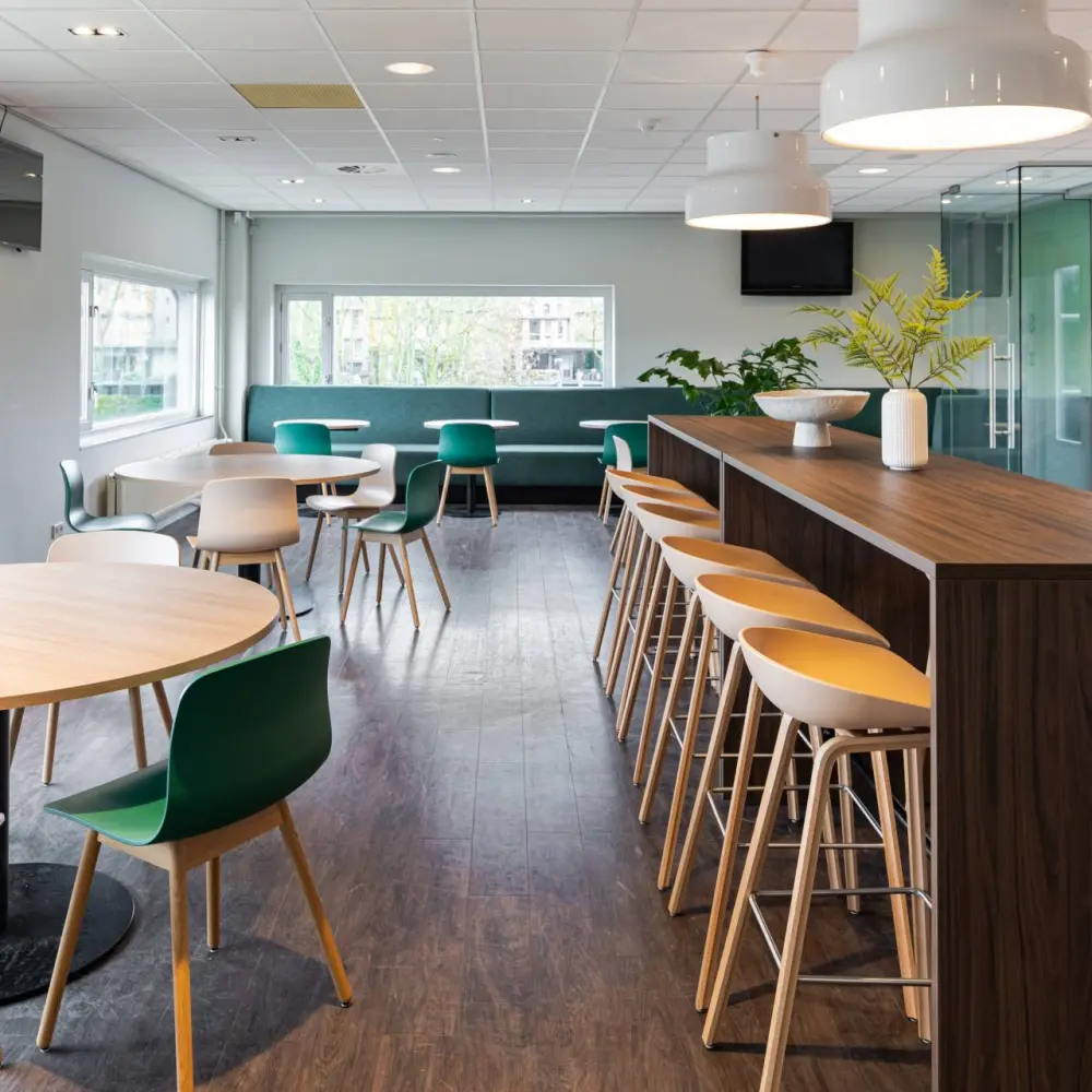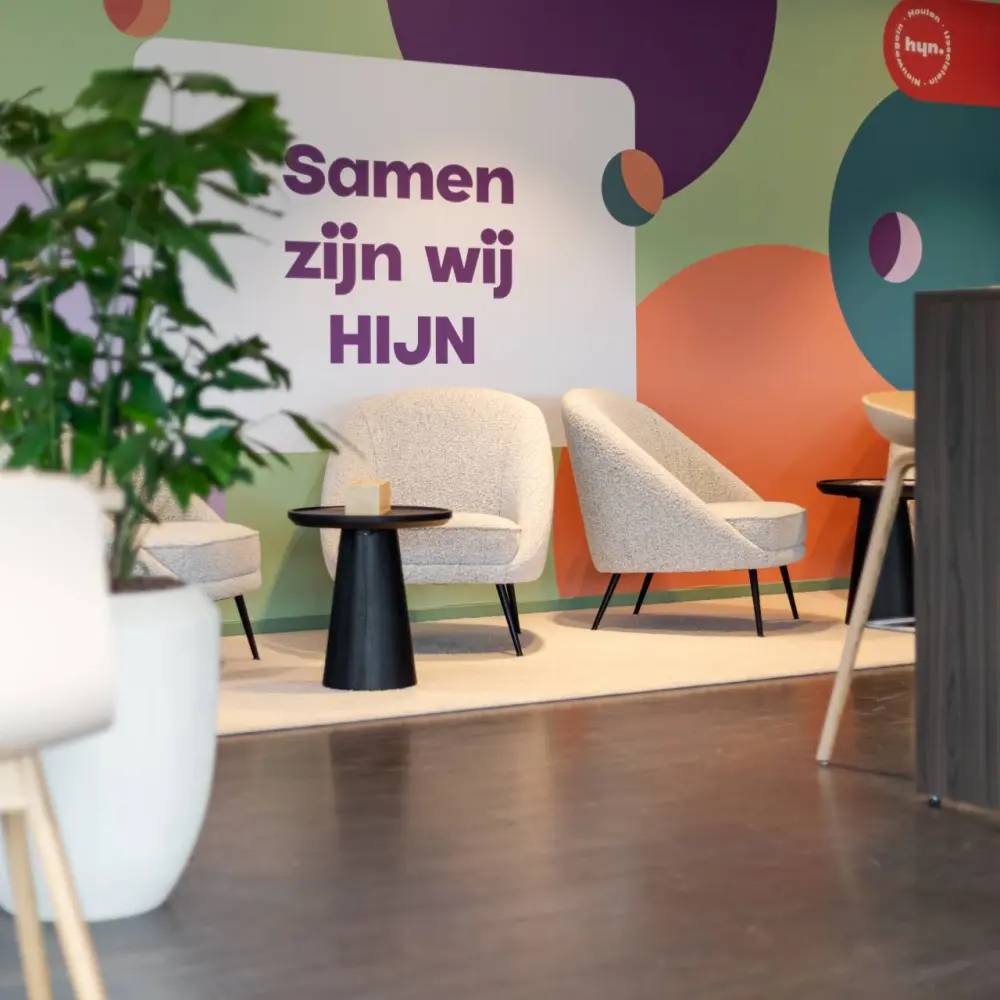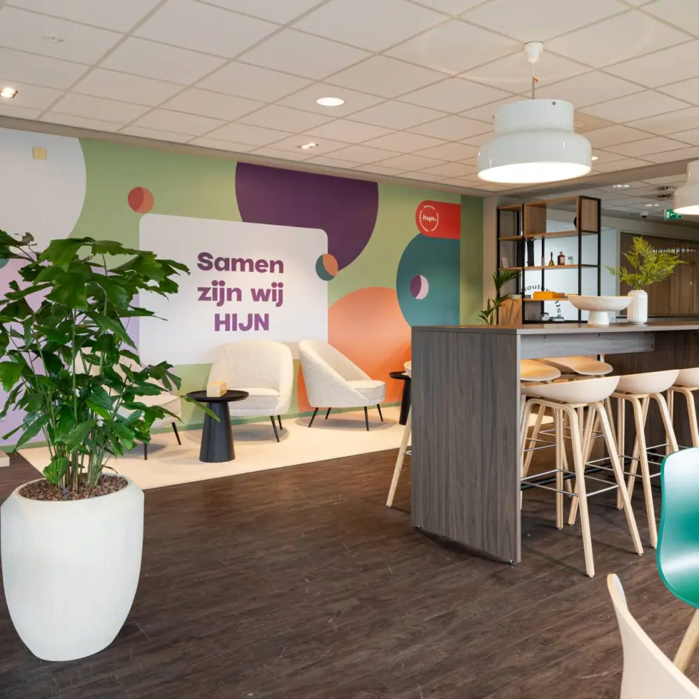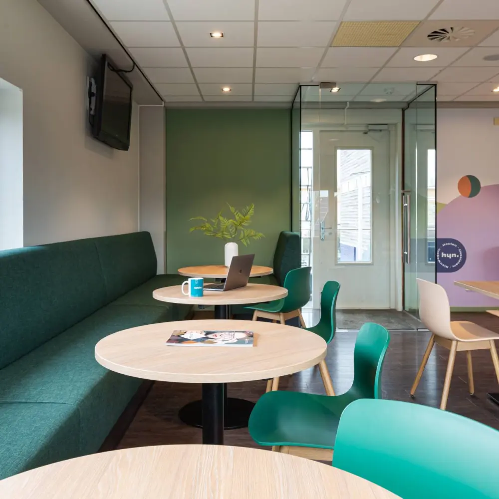 The wish was clear: to create a place that feels like coming home. Not a sterile office environment, but a mix of functions and atmosphere. Think of an inviting work café, comfortable rooms for meetings, and flexible workspaces that offer calm. By choosing fresh colors and a practical layout, an open environment emerged where the team not only works, but is truly at the center.