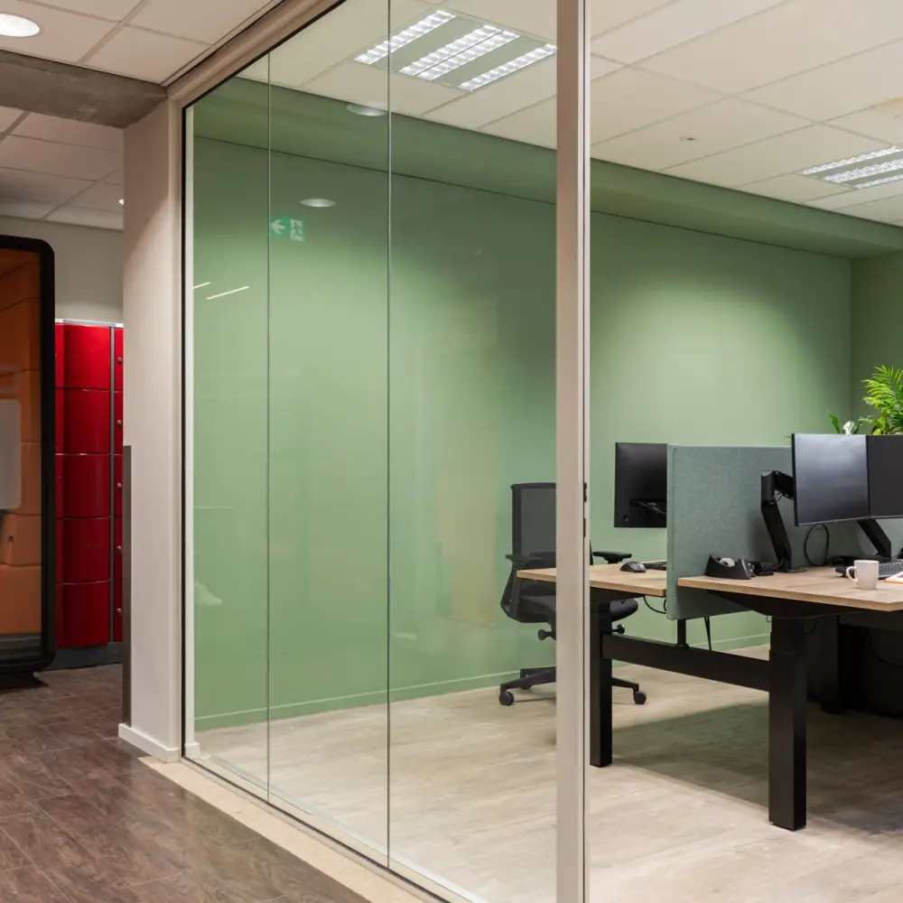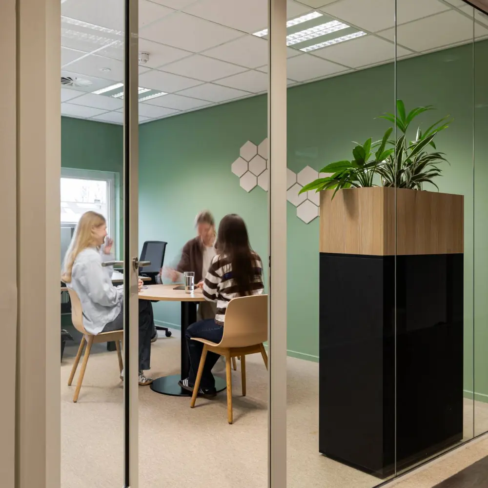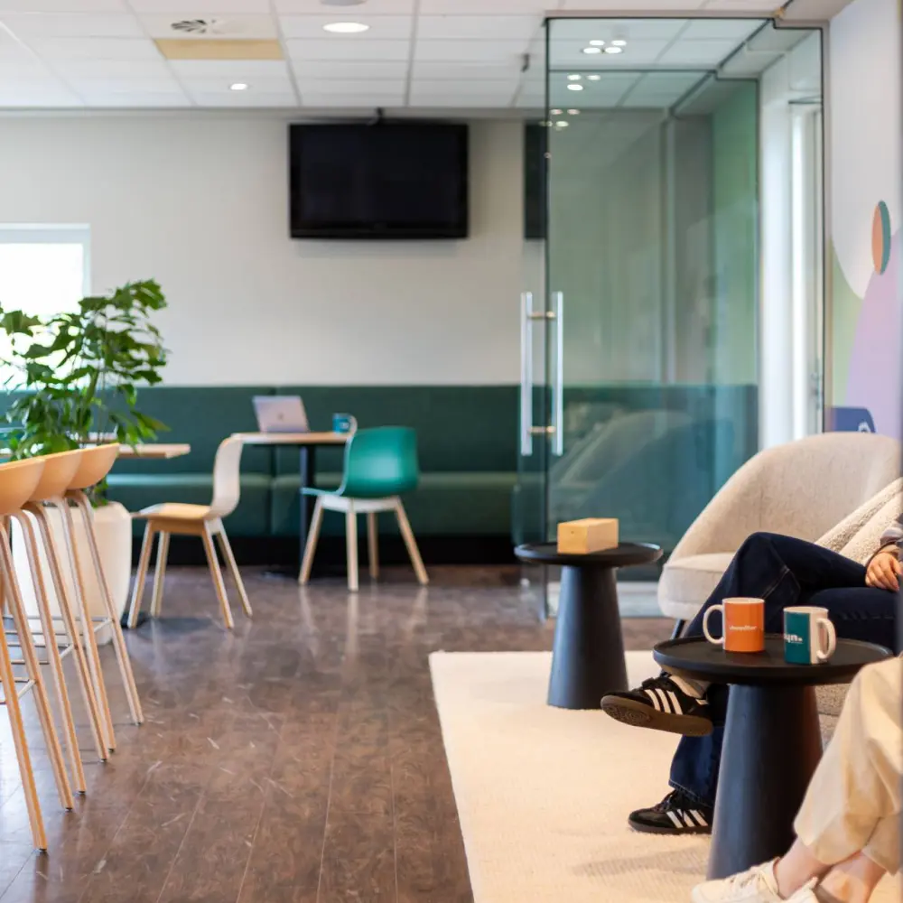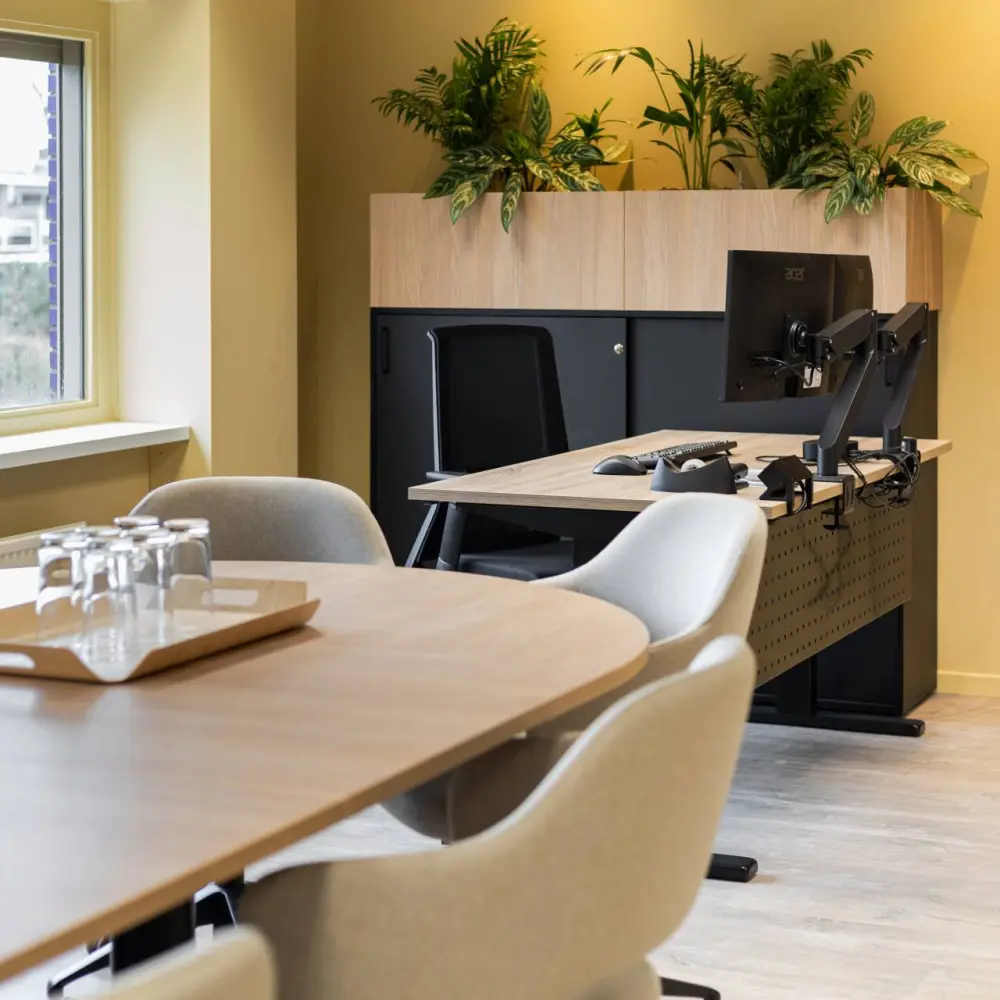 The wish was clear: to create a place that feels like coming home. Not a sterile office environment, but a mix of functions and atmosphere. Think of an inviting work café, comfortable rooms for meetings, and flexible workspaces that offer calm. By choosing fresh colors and a practical layout, an open environment emerged where the team not only works, but is truly at the center.