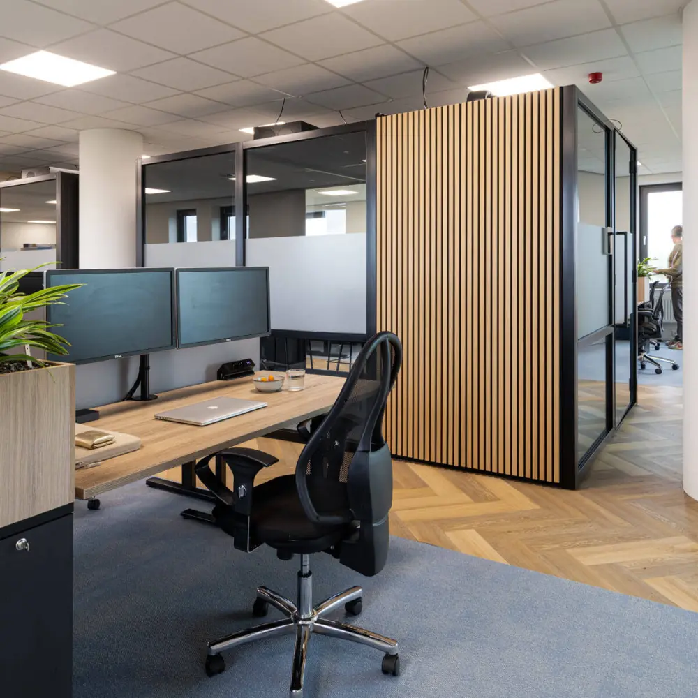 The Wood Mackenzie office is furnished with movable elements; from modular meeting boxes to flexible workstations.
