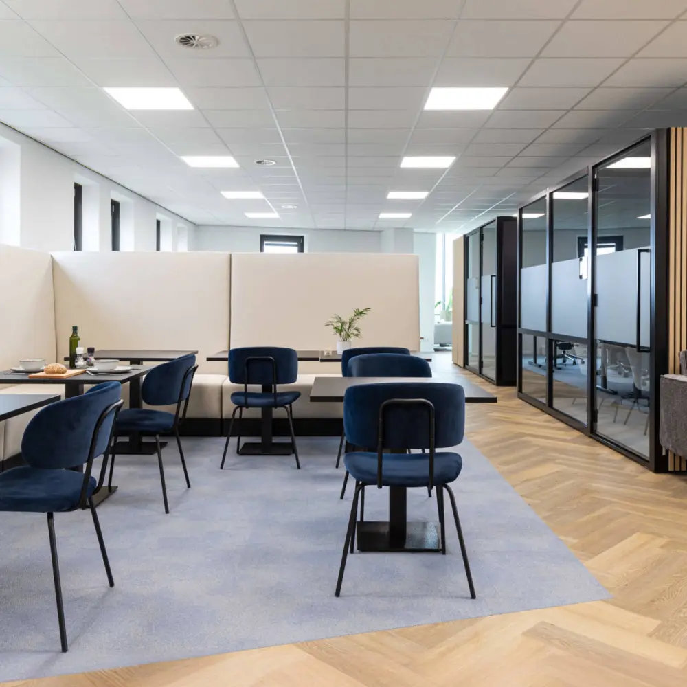 Hold meetings in silence in one of the boxes or work with focus at a flexible workstation. Are Wood Mackenzie’s needs changing? Then the interior can be easily adapted to the new circumstances. The color palette of blue and gray tones, matching Wood Mackenzie’s corporate identity, gives the office a modern look.
