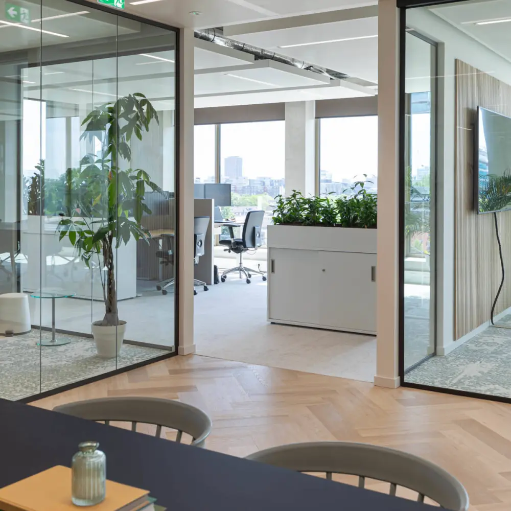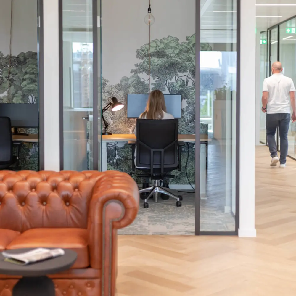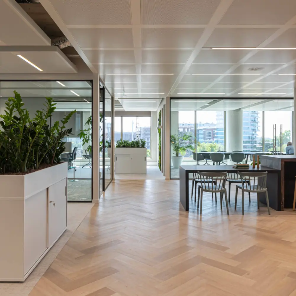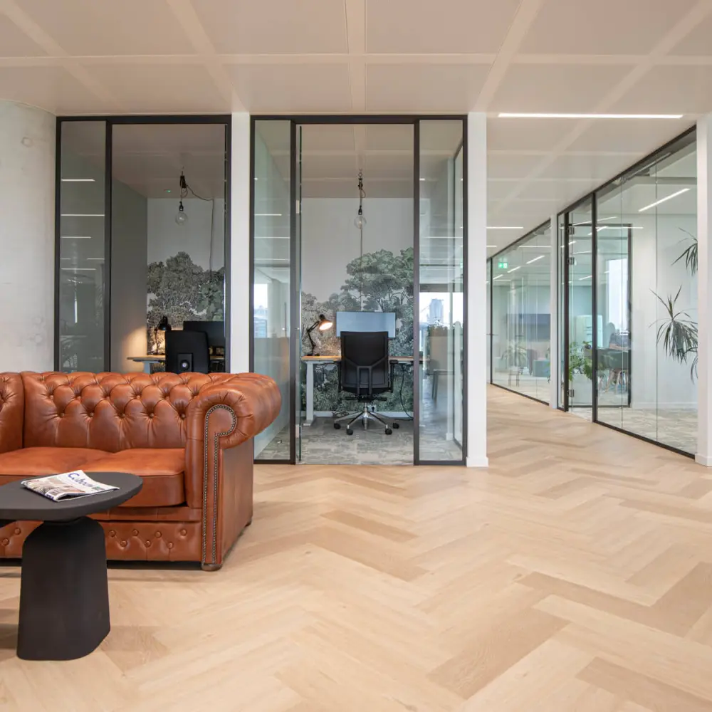 A project we are incredibly proud of is PVM. This office of 500 m2+ is located in Eindhoven and offers a fantastic view over the city and the iconic stadium. Together with the owner, we discussed all the wishes and requirements for the space. Based on this input, we started working on the interior design plan.